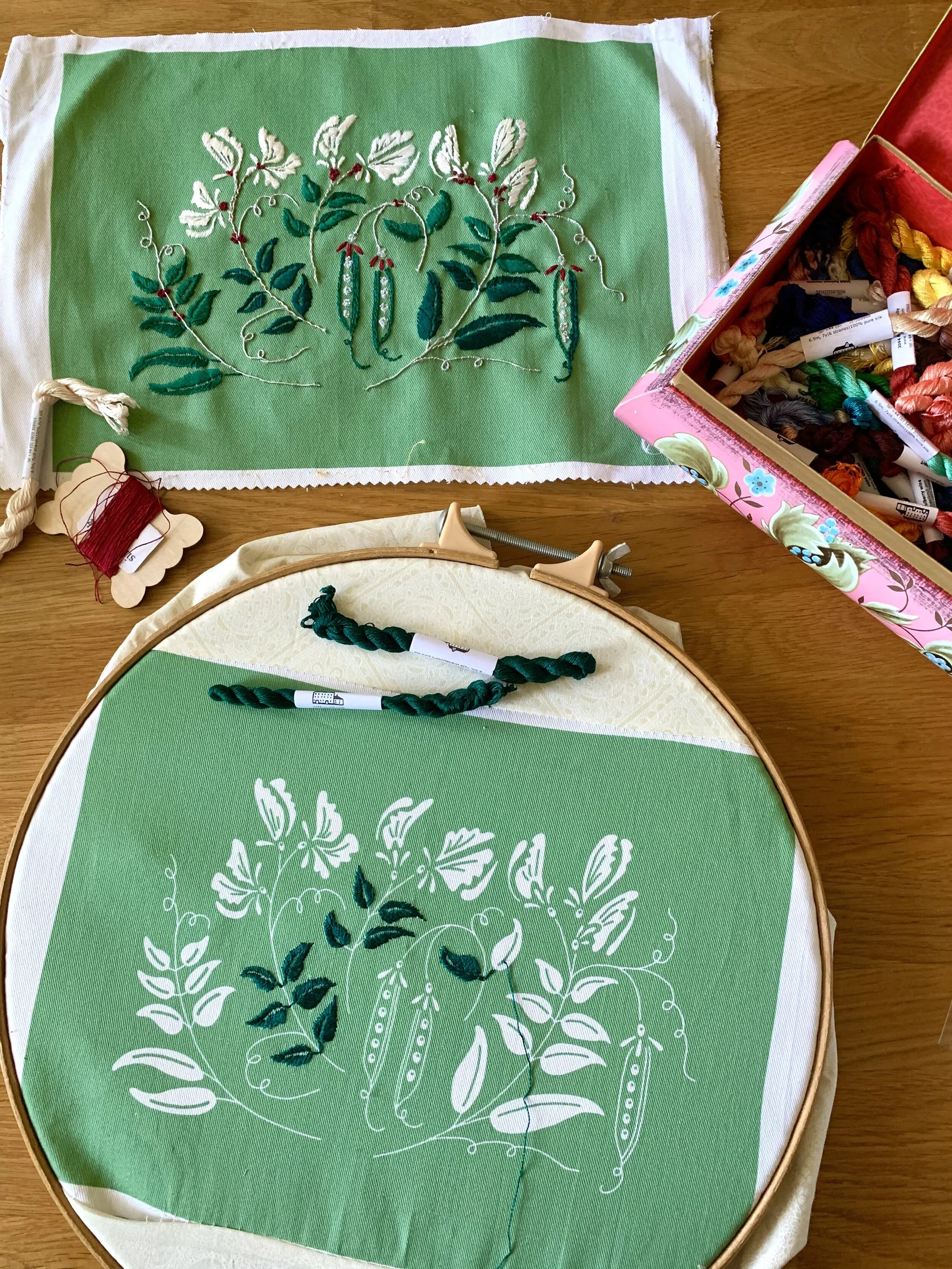 A few years ago at my first Harrogate Knitting and Stitching show, I found my stand situated next to Emma Pavier from Ann’s Orchard. The whole process of having a pitch at a big show like this seemed very daunting and I was so happy to meet Emma, who was so supportive and to see her work and the beautiful products on her stand. I was especially taken with the flower purse which came in several colours and decided to buy the green one before the end of the four days. Something else I learned at that show was that so many creative people have so many unfinished projects and kits in their stash and as someone who has never really done this, I wondered why. Of course I came to understand that at these amazing shows, it is just so hard to resist all the beautiful things that you see and I became a member of this clan without really realising it.