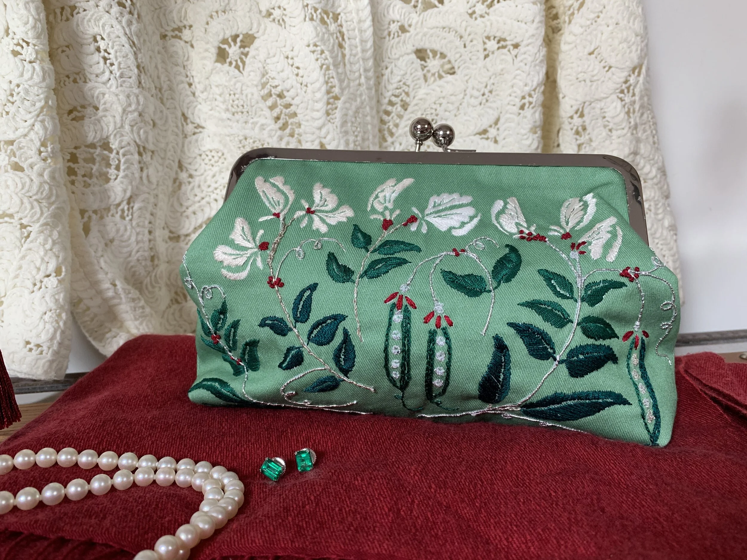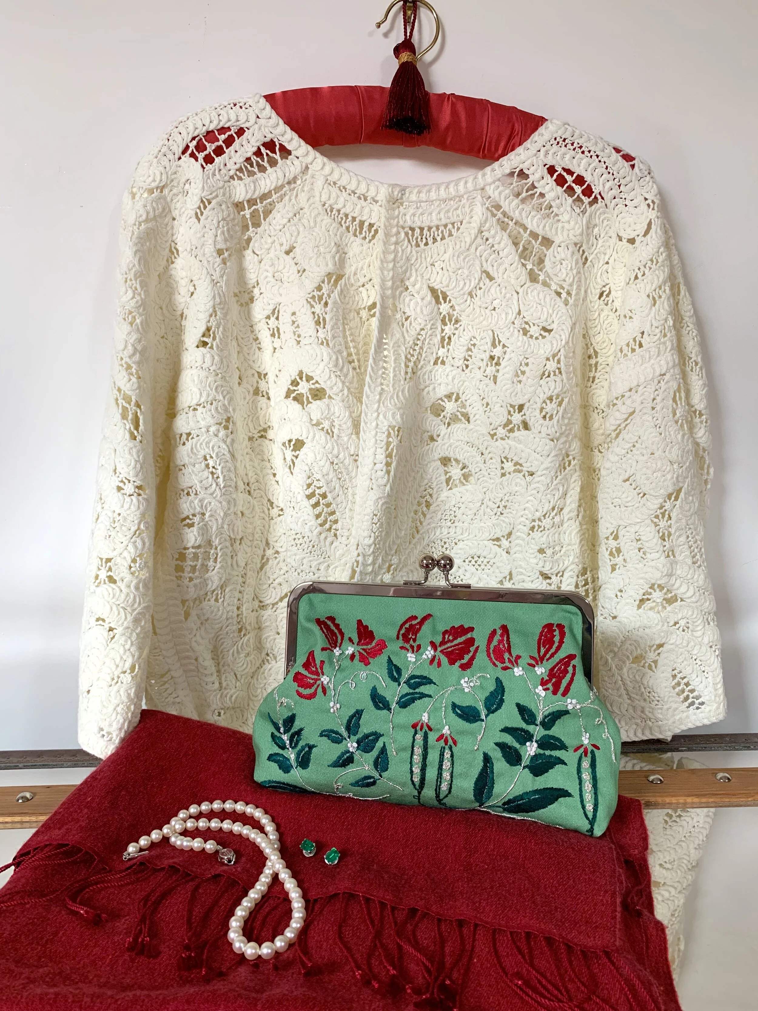 /Clutch bags seem impossibly glamorous to a vintage girl who spends most of her days in Jeans, but this one is pretty special. In fact this posting has been marinating in my draft box for a very long time and I am so happy to finally be able to write about it. During these long months of lockdown, ‘making things’ has been so important to me and I know to lots of other people too and it has also been a chance to finish up some things that have, for whatever reason, been dragging their threads…so to speak. This charming project has been one of them and I really can’t explain why it has taken me so very long to get around to finishing it.
