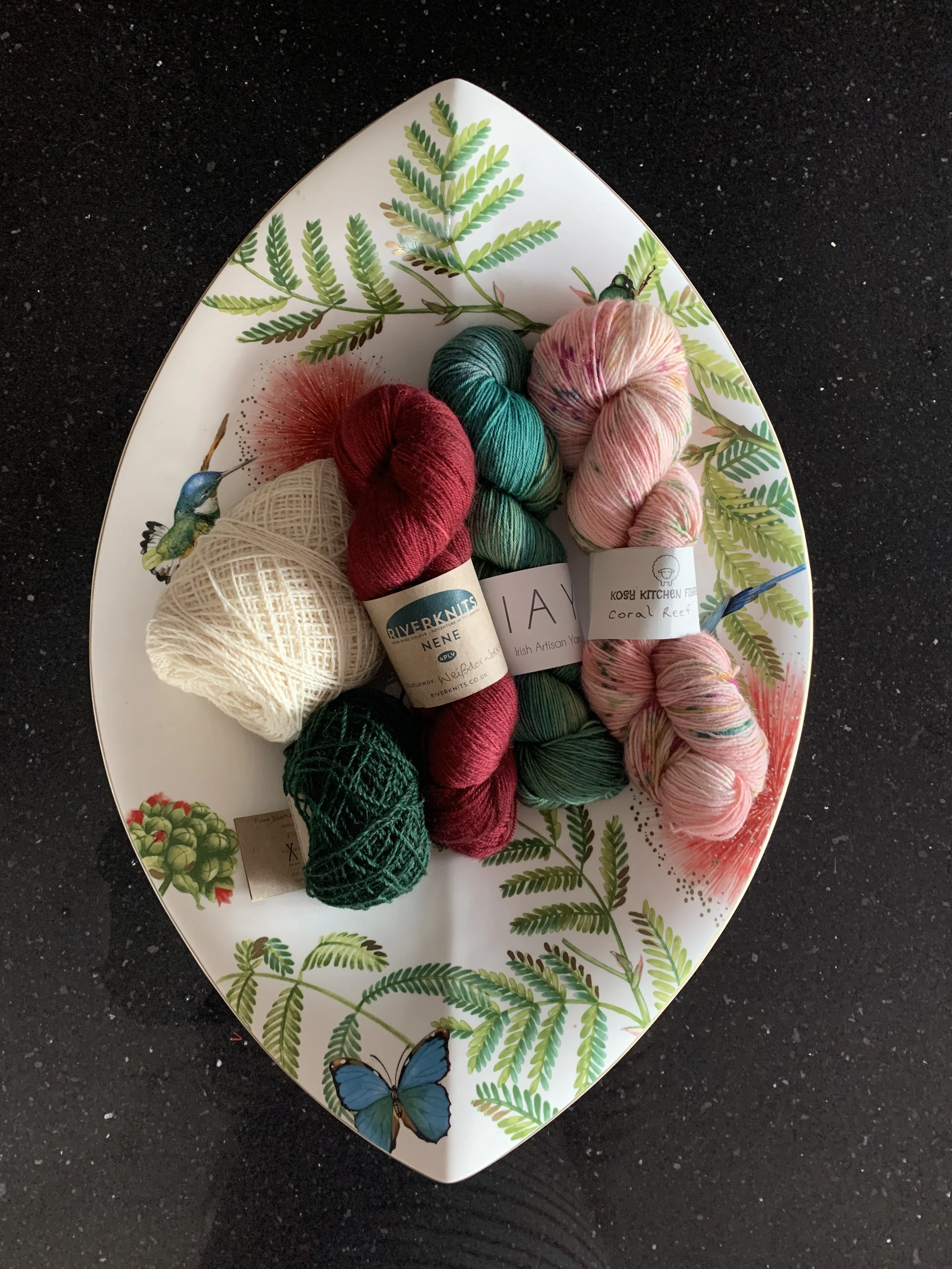 These beautiful hand dyed yarns should make up into a really pretty patchwork fairisle shawl but for sure this is a real challenge for me technically so we shall see how it goes.